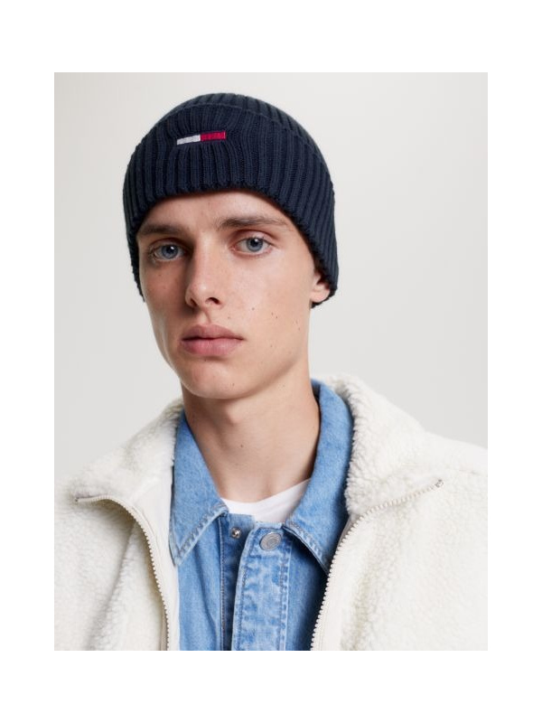 Kombinirajte stil i praktičnost u hladnijim danima s ovom rebrasto pletenom kapom s odvažnim natpisom Tommy Jeans na okrenutoj manšeti.