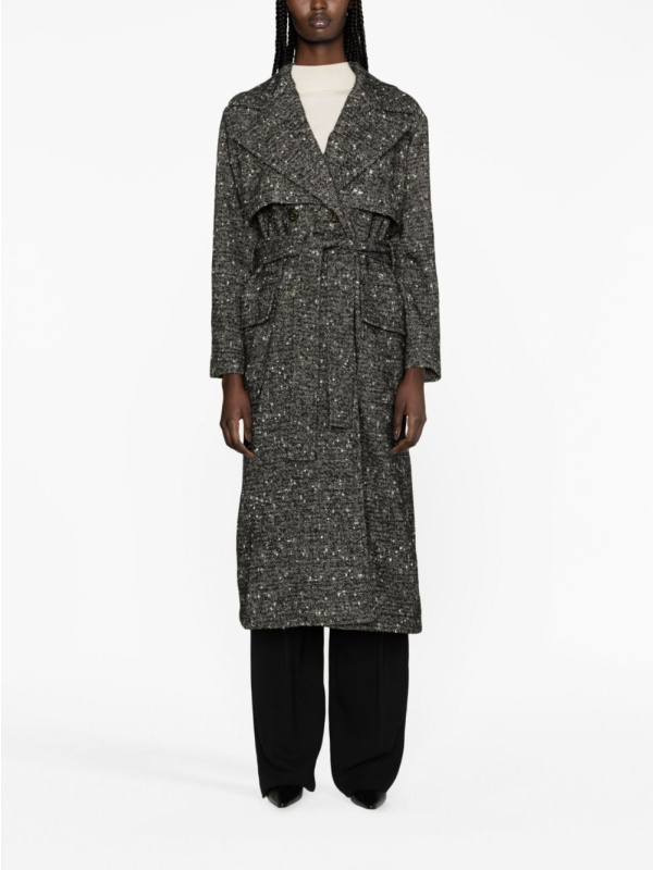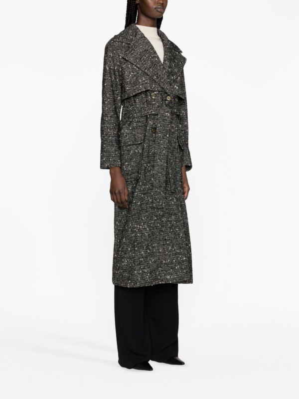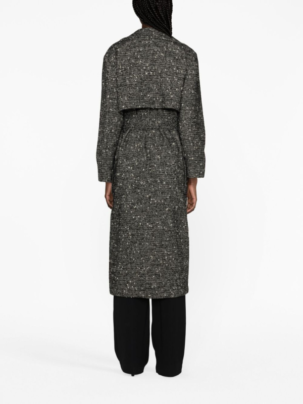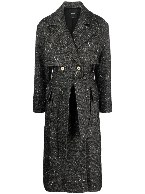 Pokazujući usredotočenost brenda na glavnu vanjsku odjeću, ovaj crni PINKO kaput na dvostruko kopčanje izrađen je od mélange vune. Steže se podesivom vezicom u struku.