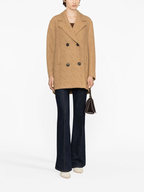 PINKO predstavlja svoj pogled na klasični dizajn. Izrađen od mješavine vune, komad s dvorednim kopčanjem dolazi u neupadljivoj smeđoj nijansi devine boje i završen je širokim urezanim reverima.