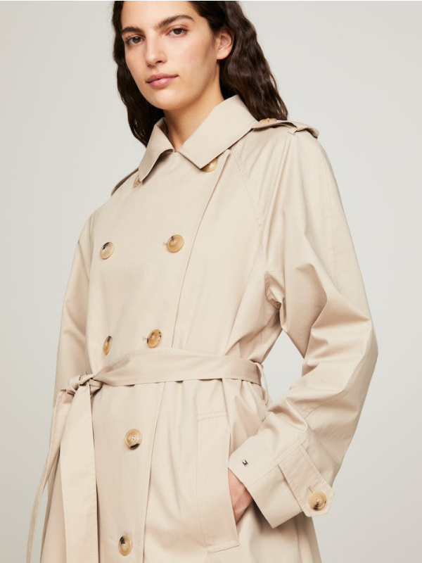 Za bezvremenski stil, ovaj kaput od organskog pamuka praktična je i dugotrajna glavna stvar. Sadrži klasične elemente kao što su tradicionalni preklop za oluju i pojas u struku.