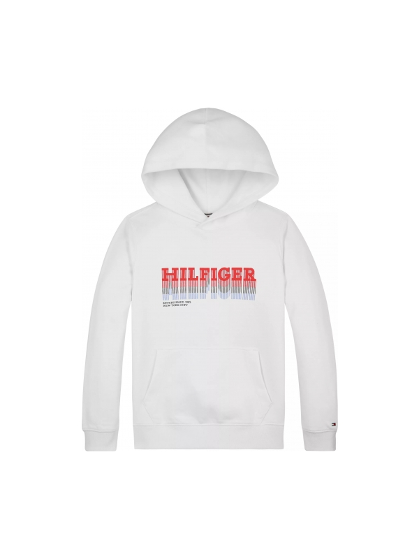 Bijeli Tommy Hilfiger duks za dječake s kapuljačom, džepom i logo printom