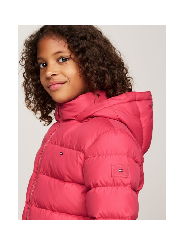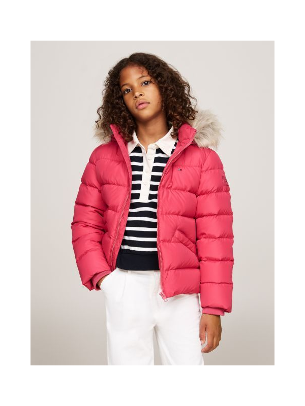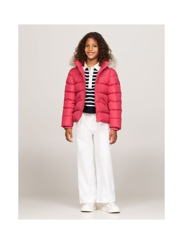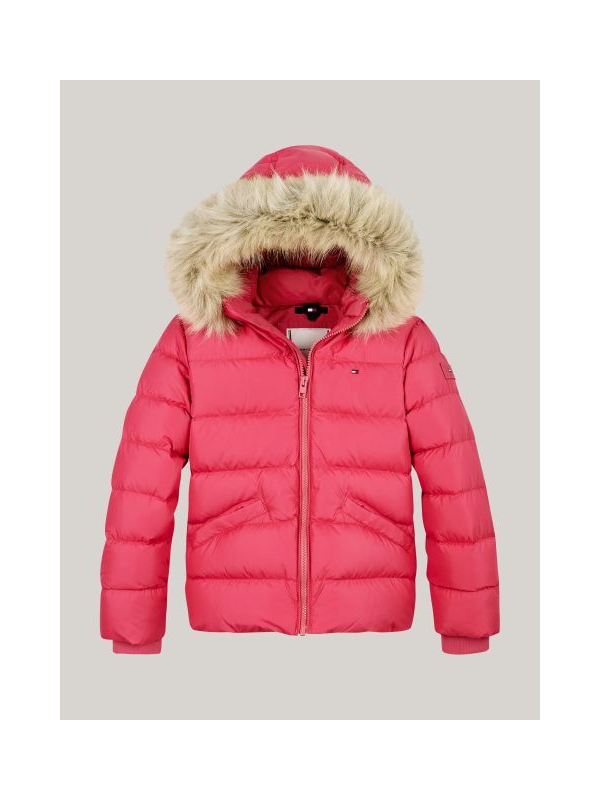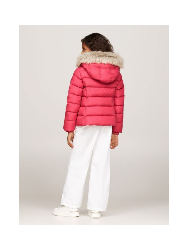 Tommy Hilfiger roza jakna za djevojčice s kapuljačom od umjetnog krzna