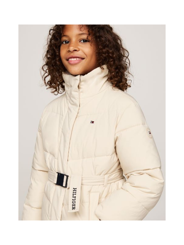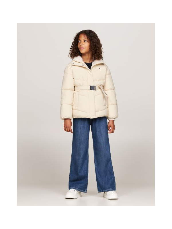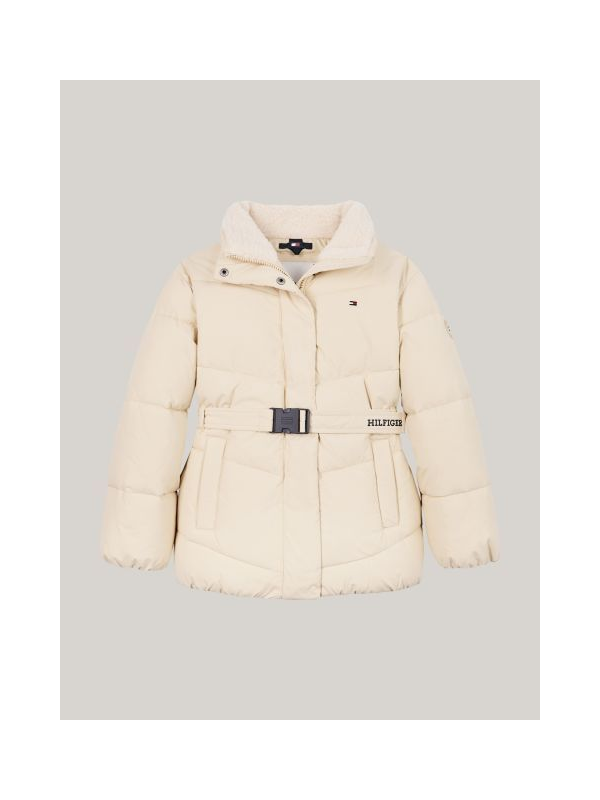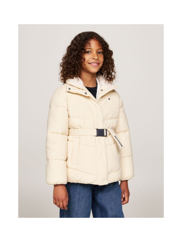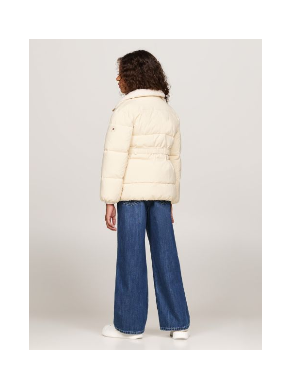 Prljavo bijela Tommy Hilfiger puffer jakna za djevojčice s plišanim ovratnikom i remenom