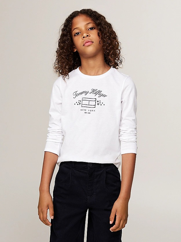 Bijela Tommy Hilfiger majica za djevojčice s printom na prsima