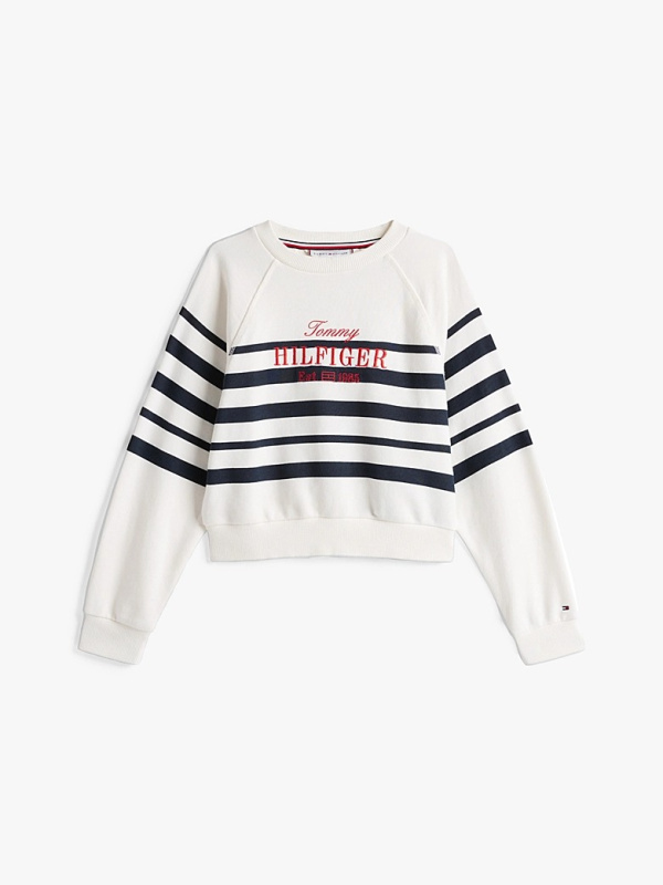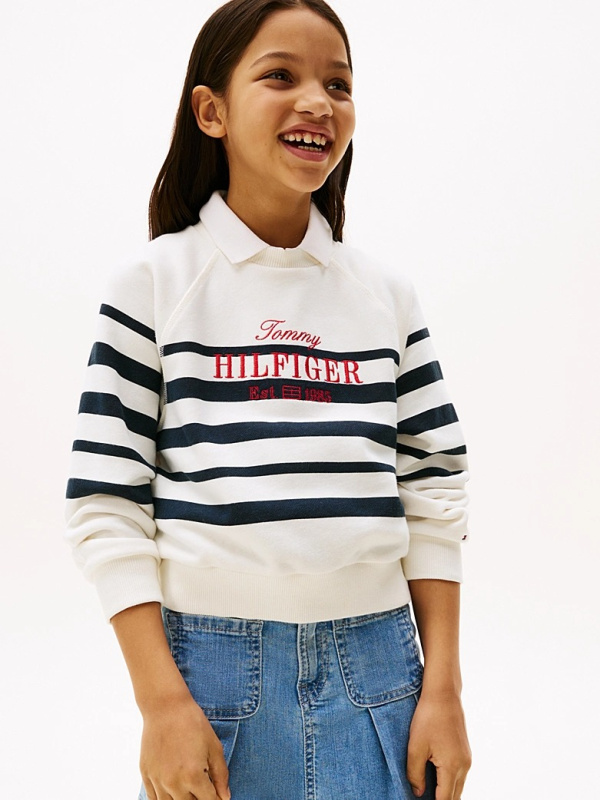 Tommy Hilfiger pulover na pruge za djevojčice u kombinaciji bijele i tamnoplave boje