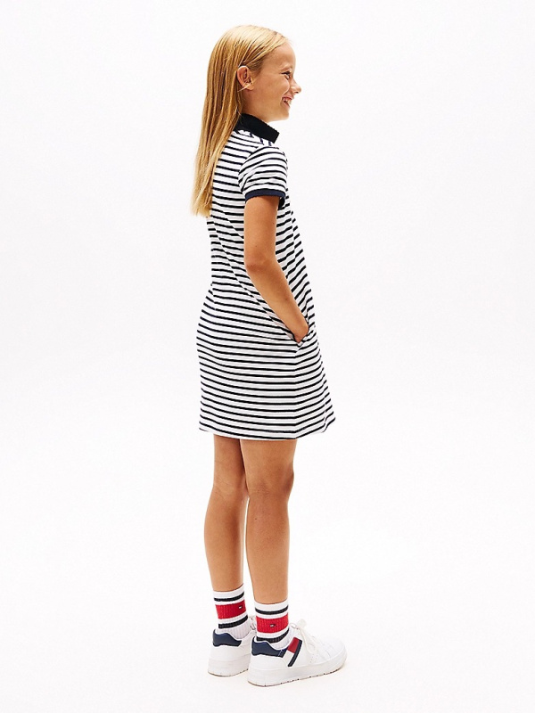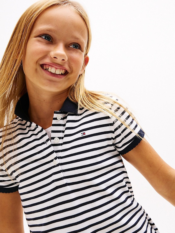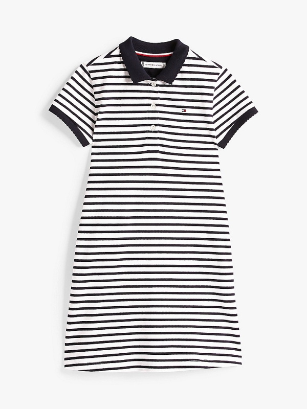 Bijela Tommy Hilfiger polo haljina za djevojčice s tamnoplavim prugama
