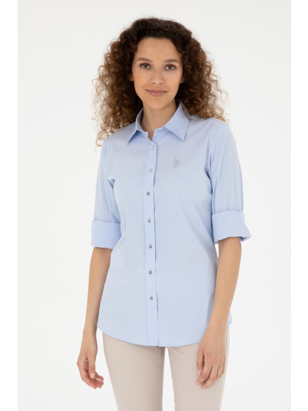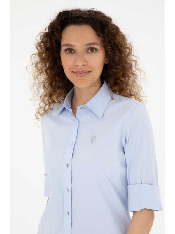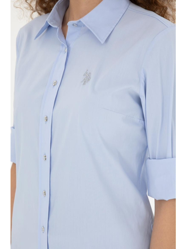 Ženska svijetloplava U.S. POLO ASSN. košulja dugih rukava s logom
