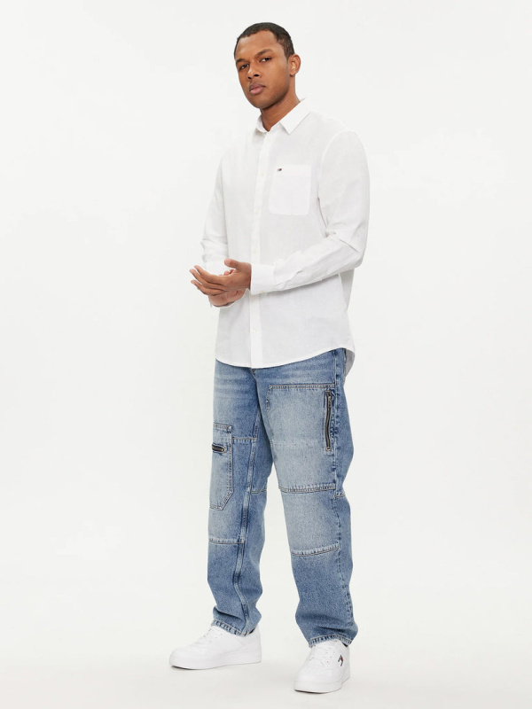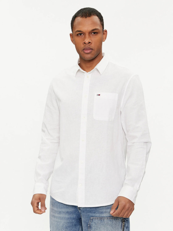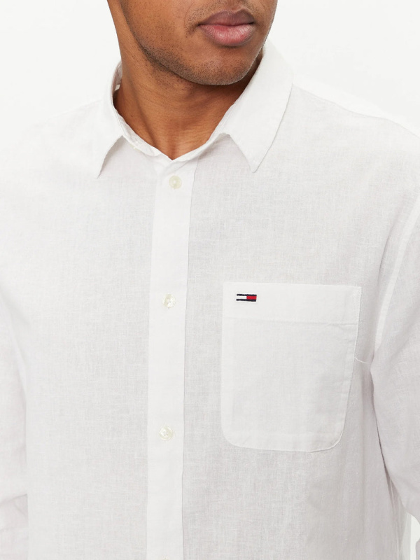 Tommy Jeans košulja regularnog kroja od mješavine lana elegantan je i svestran odjevni predmet koji kombinira svježinu lana s izdržljivošću drugih tkanina. Izrađena od mješavine lana i drugih visokokvalitetnih materijala, ova košulja nudi cjelodnevnu udobnost i stil.