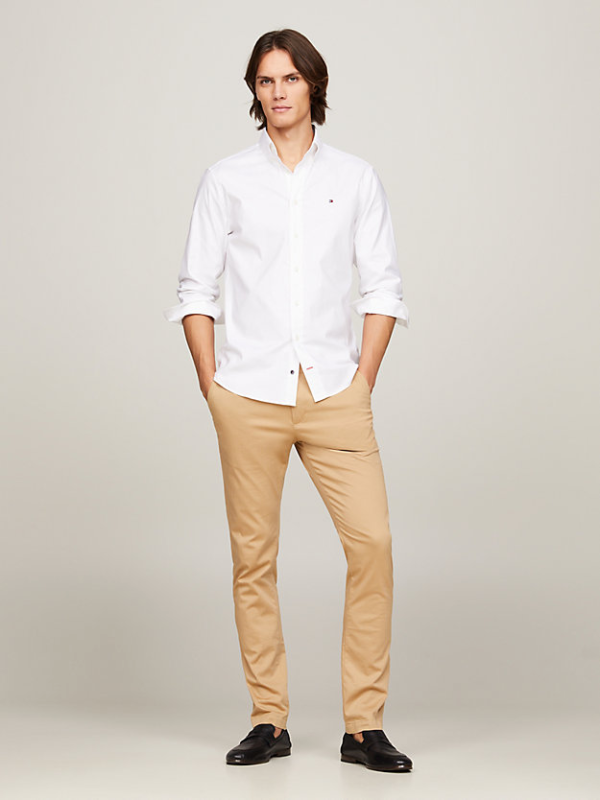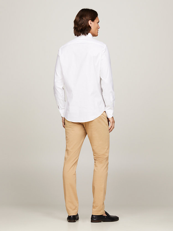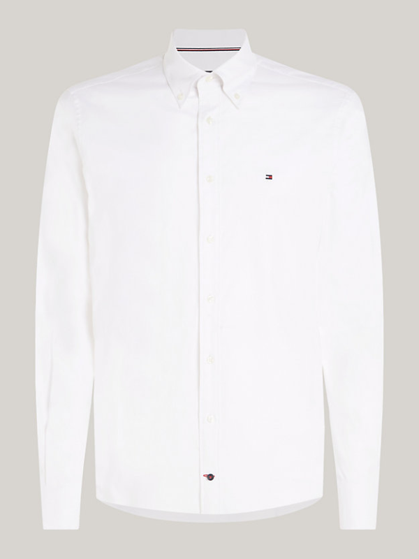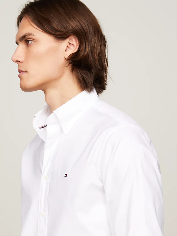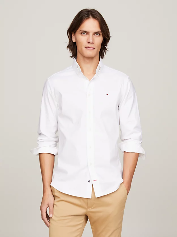 Ova profinjena košulja izrađena je od organskog oksfordskog pamuka, uključujući tehnologiju Tommy Hilfiger Flex kako bi se osiguralo vrhunsko udobno pristajanje
