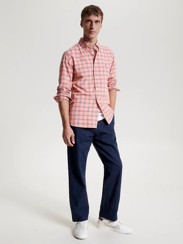 Fil-à-fil tkanje daje teksturalnu zanimljivost ovoj klasičnoj kariranoj košulji, izrađenoj od čistog organskog pamuka udobnog uobičajenog kroja.