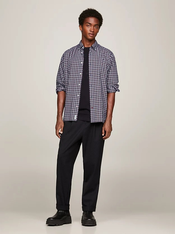 Ova lagana košulja izrađena je od čistog pamuka za udobno pristajanje i ima dizajn mikro tartana po cijeloj površini.