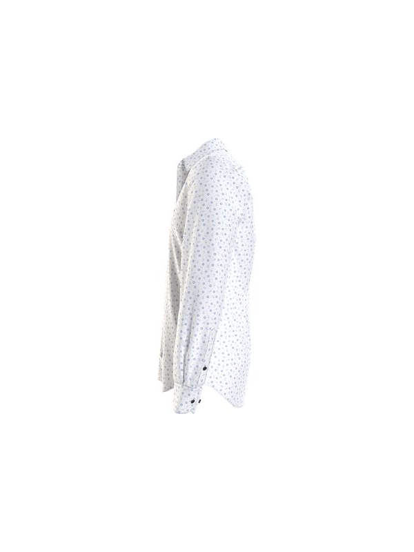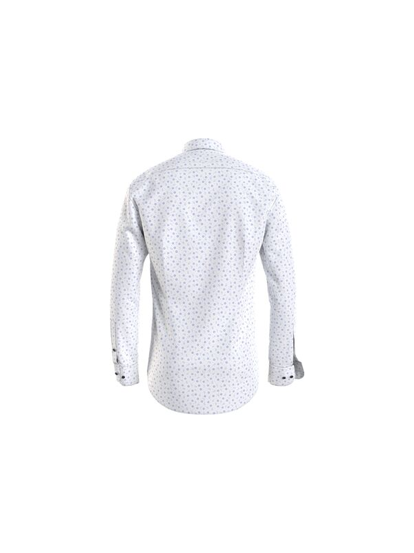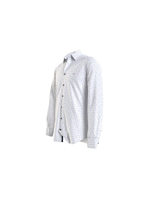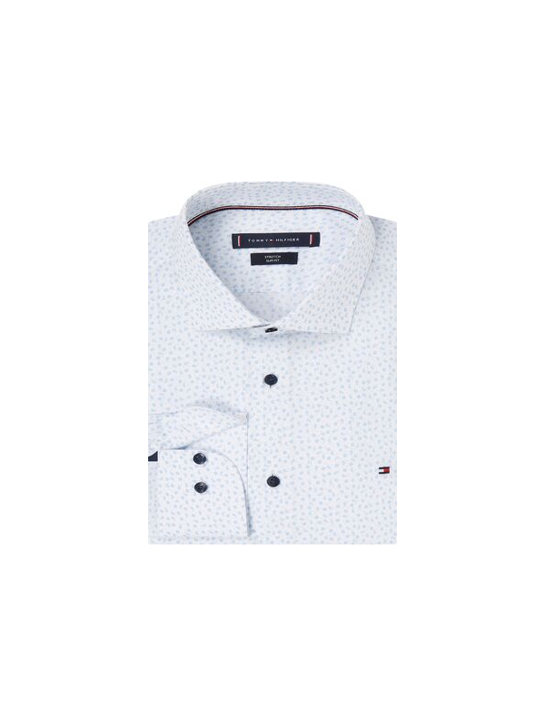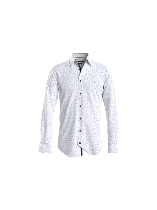 Bijela košulja s kragnom s uzorkom iz Tommy Hilfigera. Bijela košulja sa svijetloplavim uzorkom. Dobro prianjajući uski kroj u kombinaciji s ugodnim rastezljivim materijalom. Čini košulju stvarno dobro prianjajućom i ugodnom za nošenje. Graciozan logotip zastave izvezen na prsima.