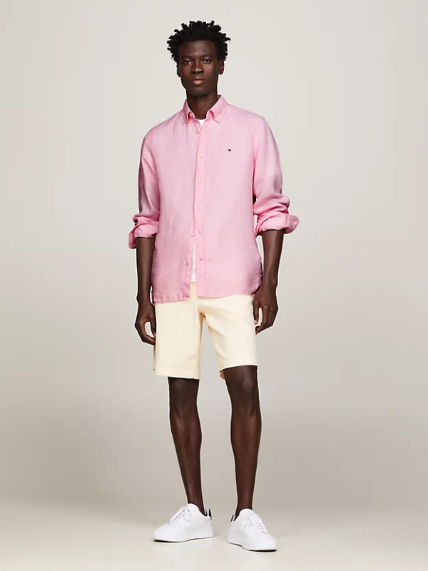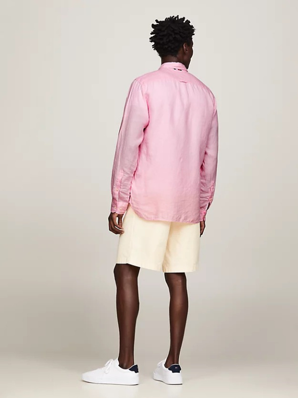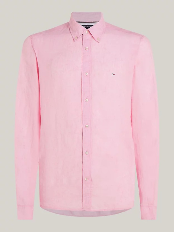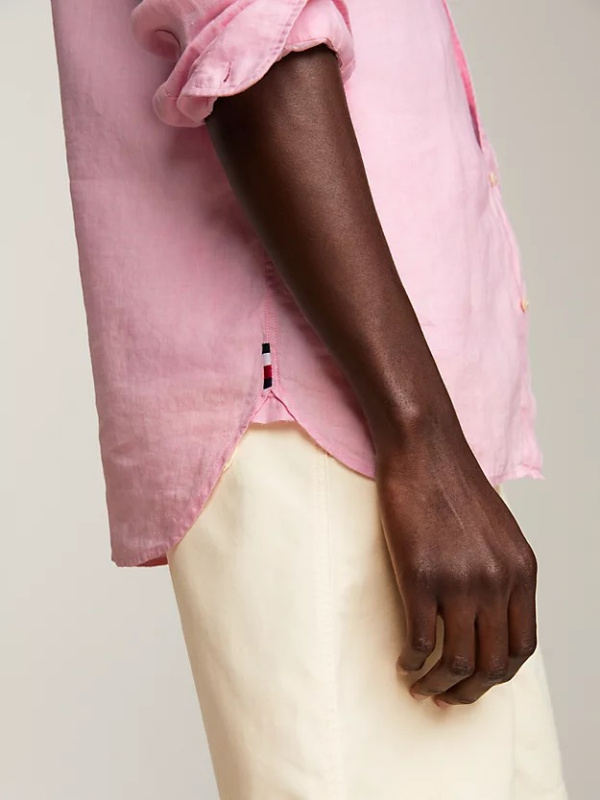 Ova ružičasta Tommy Hilfiger košulja na kopčanje provest će vas kroz toplije mjesece u jednostavnom stilu zahvaljujući prozračnoj lanenoj izradi