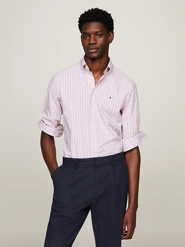 Muška roza karirana Tommy Hilfiger košulja s logom
