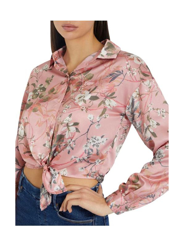 Guess Jun kratka satenska košulja dugih rukava, sa čvorom