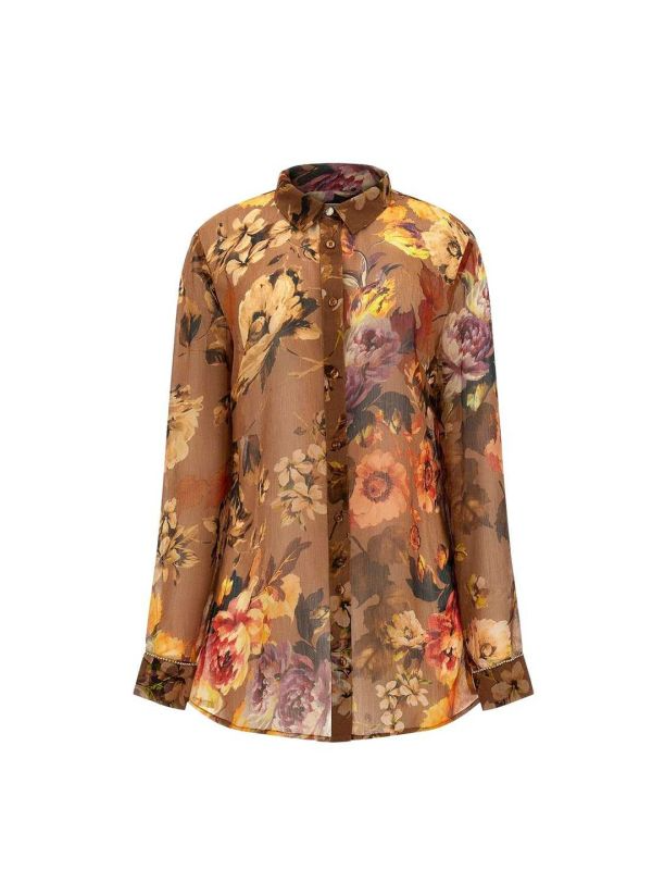 Guess 'Clouis' poluprozirna smeđa ženska košulja u cvjetnom dezenu