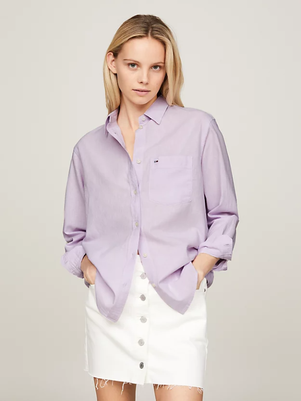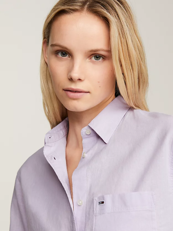 Ženska Tommy Hilfiger košulja izrađena od mješavine pamuka i lana ležernog oblika, ova je košulja savršen opušteni komad za ležerne dane.