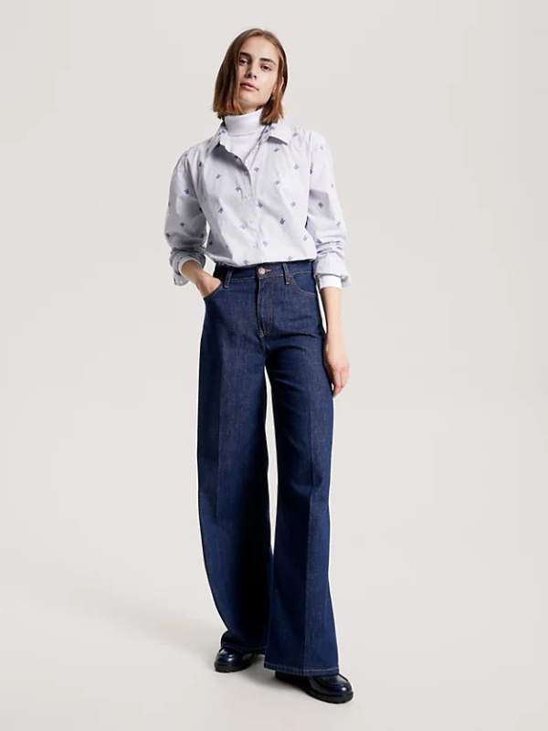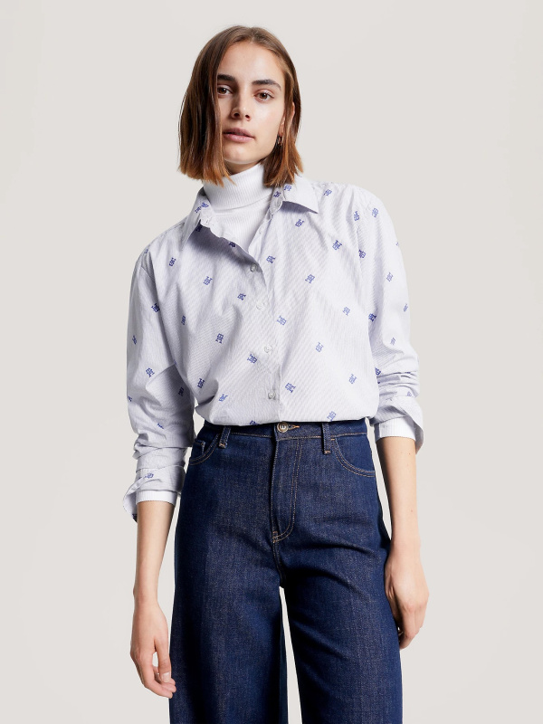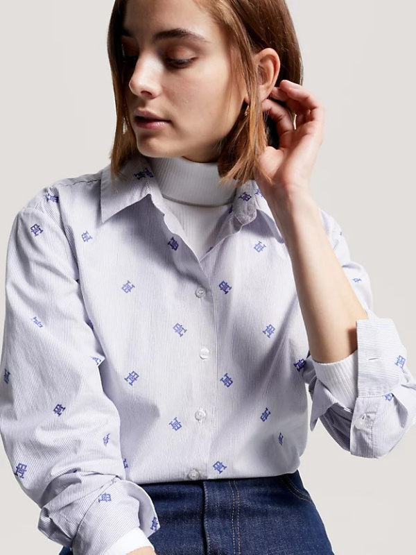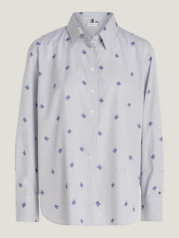 Ova Ithaca prugasta košulja ima predimenzionirani kroj i raspršene TH monograme, što čini elegantan, ali jednostavan stil.