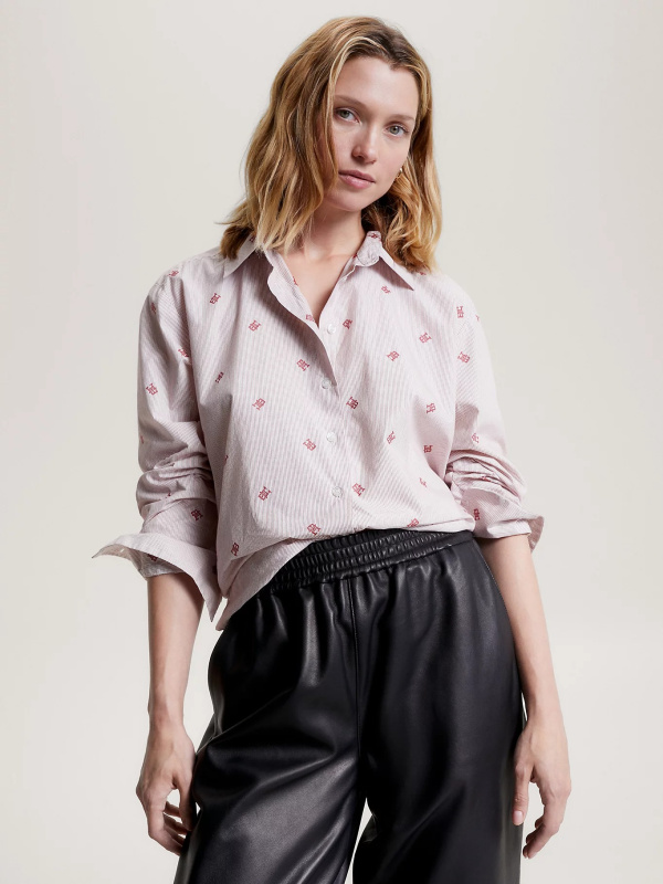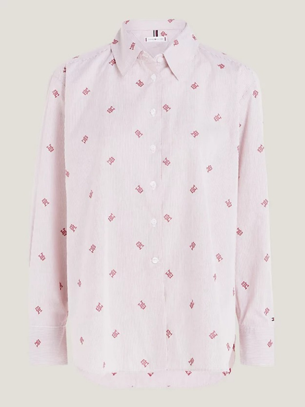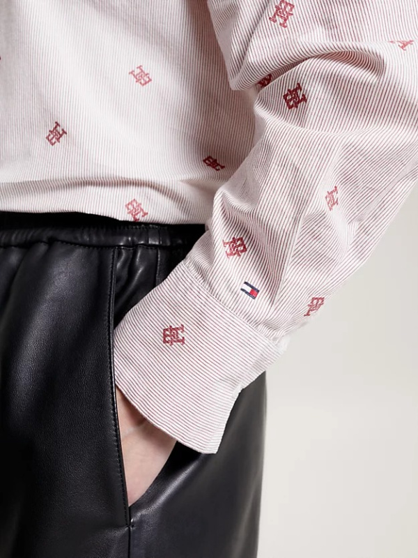 Ova Ithaca prugasta košulja ima predimenzionirani kroj i raspršene TH monograme, što čini elegantan, ali jednostavan stil.