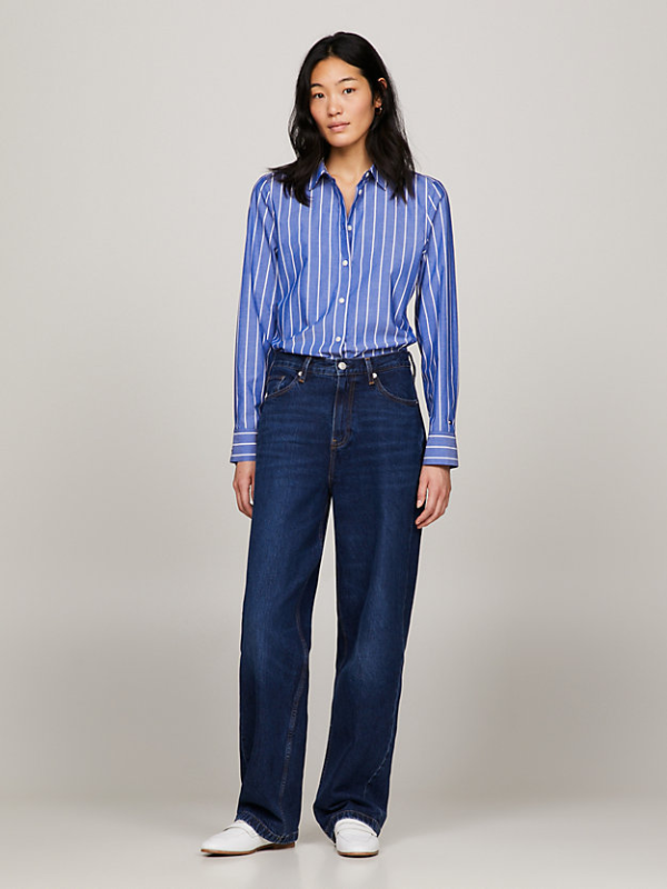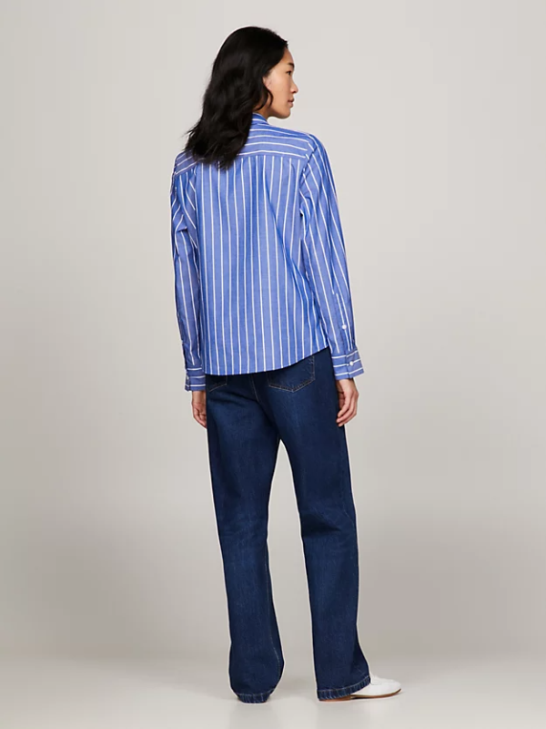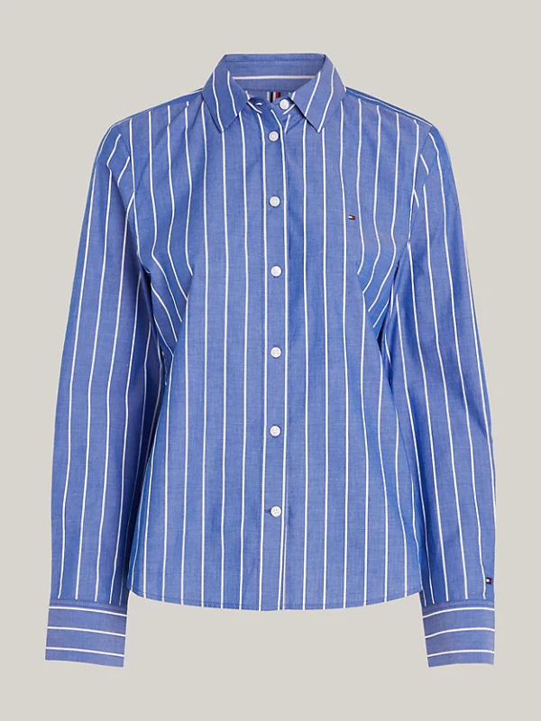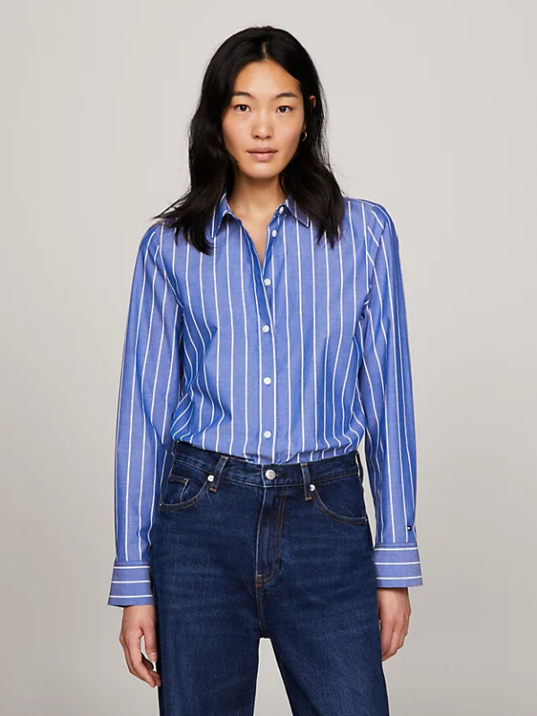Unesite sportski stil u svoj elegantni komplet s ovom čistom pamučnom košuljom s ovratnikom i okomitom bejzbolskom prugom po cijeloj površini.