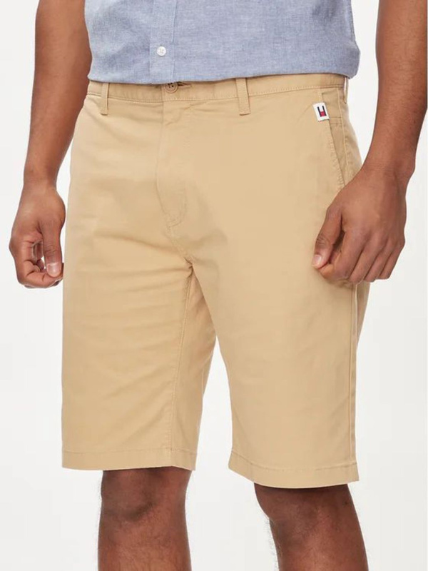 Muške bež Tommy Jeans Scanton kratke hlače svestrani su i moderni odjevni predmet koji odražava prepoznatljiv stil i kvalitetu marke Tommy Jeans.