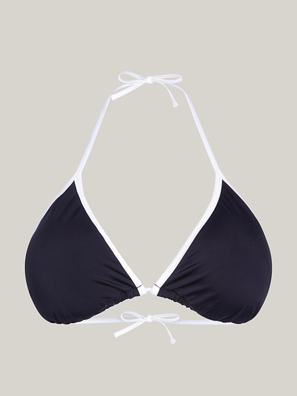 Gornji dio Tommy Hilfiger kupaćeg kostima dizajniranim s podesivim kopčama za samovezivanje na vratu i leđima.