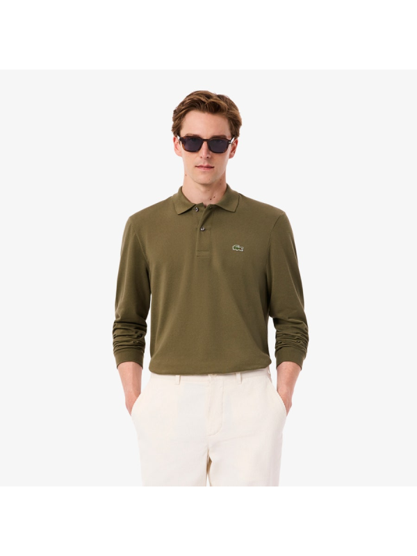 Muška khaki zelena Lacoste polo majica dugih rukava s logom