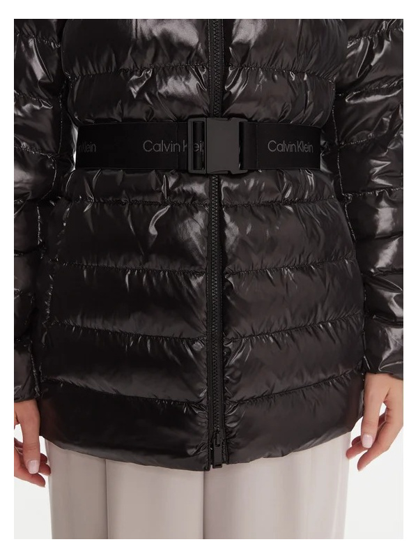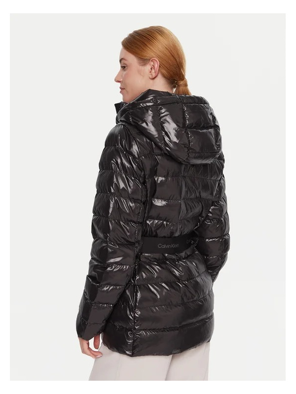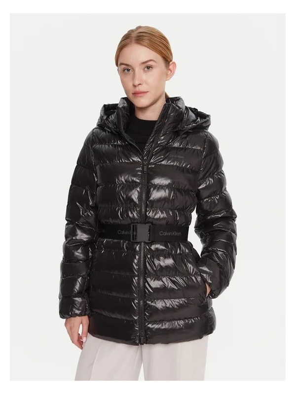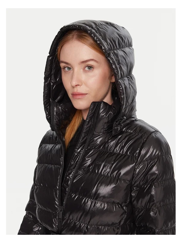 Ženska crna prošivena Calvin Klein jakna od sjajnog najlona