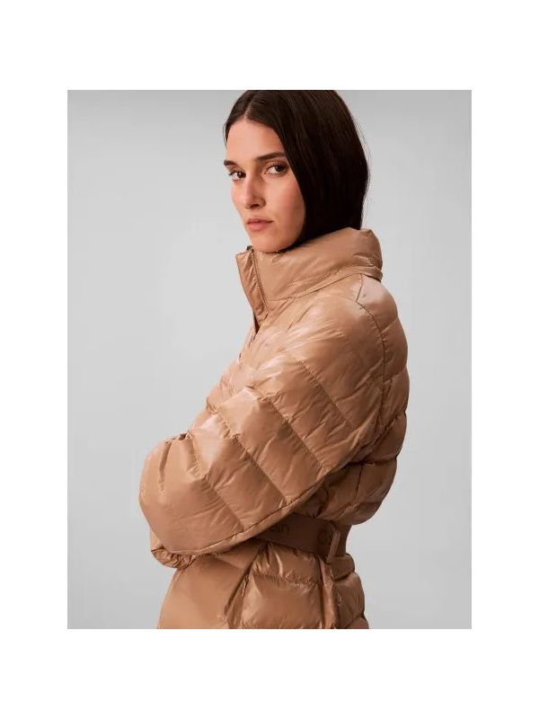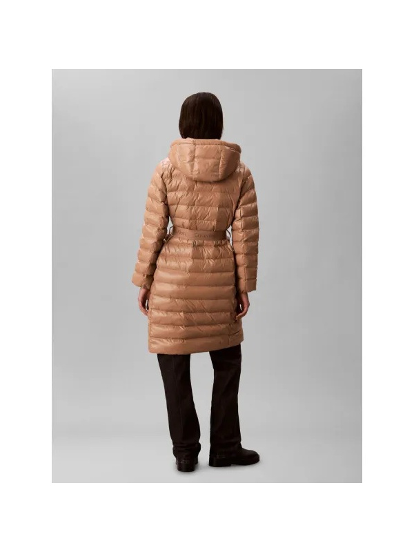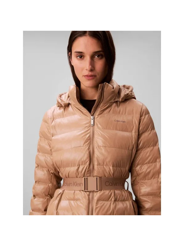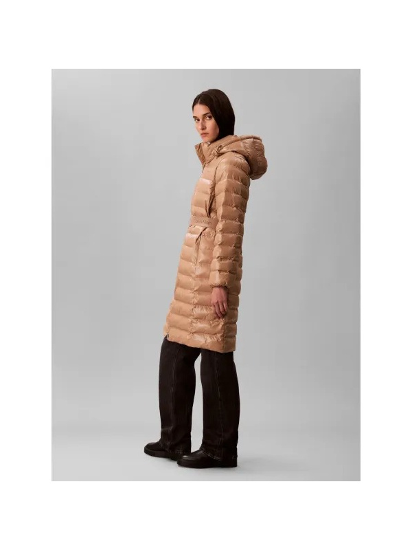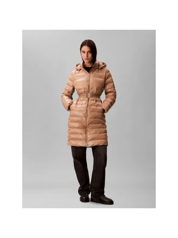 Ženski dugi Calvin Klein bež prošiveni kaput s kapuljačom