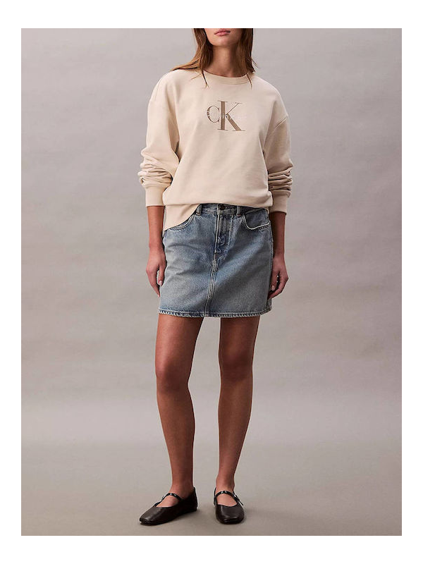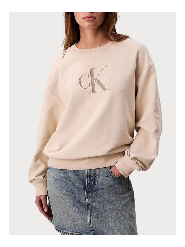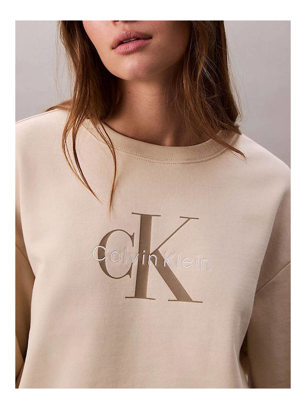 Ženska Calvin Klein bež majica dugoh rukava s logom na prsima