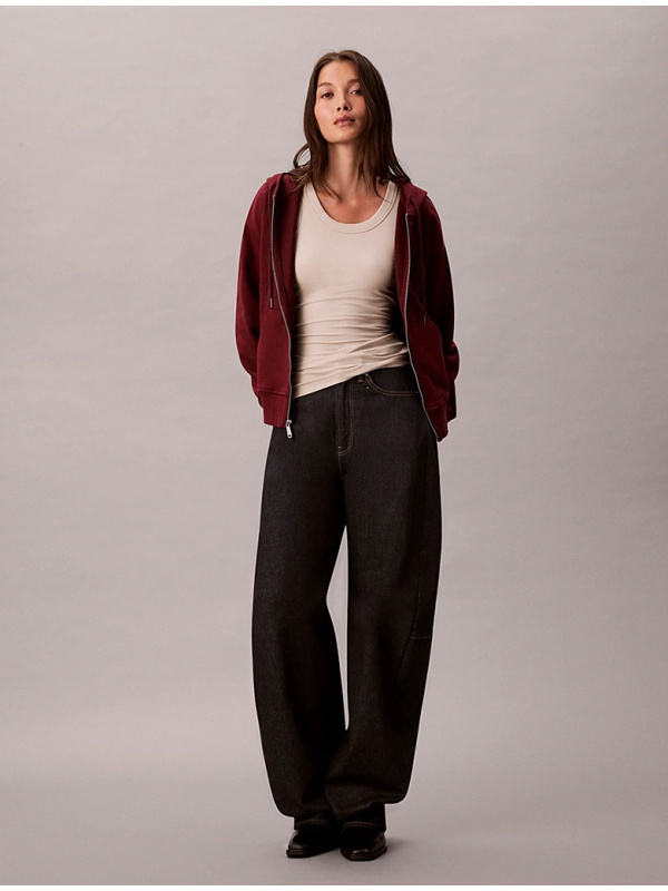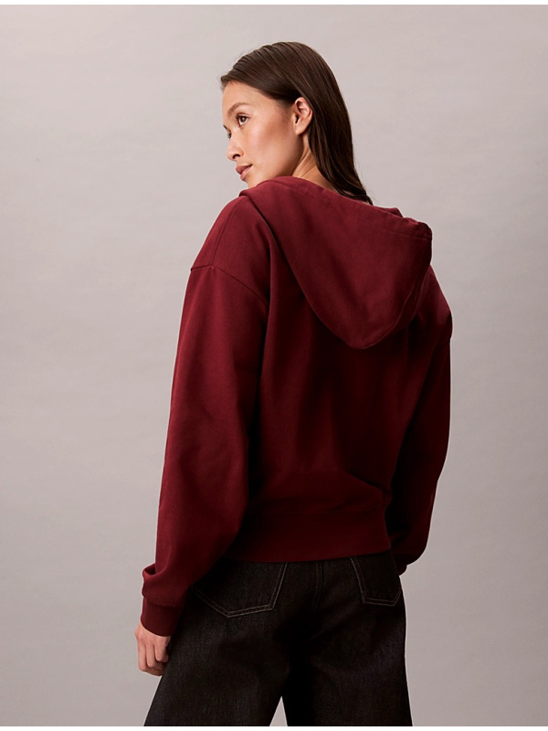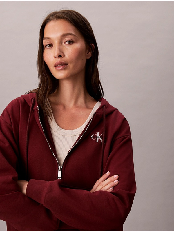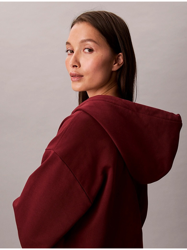 Ženska tamnocrvena Calvin Klein dukserica s kapuljačom i patentnim zatvaračem