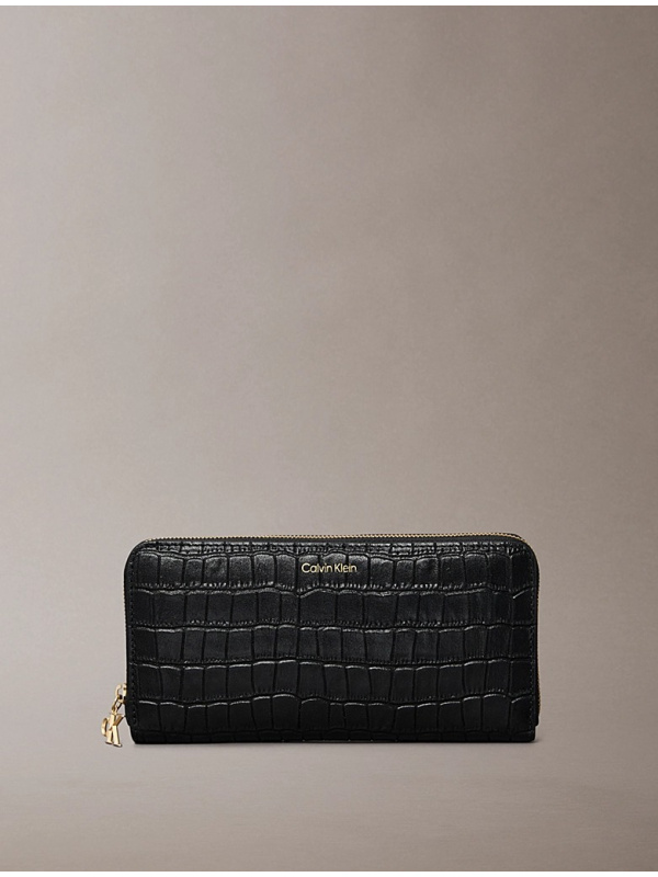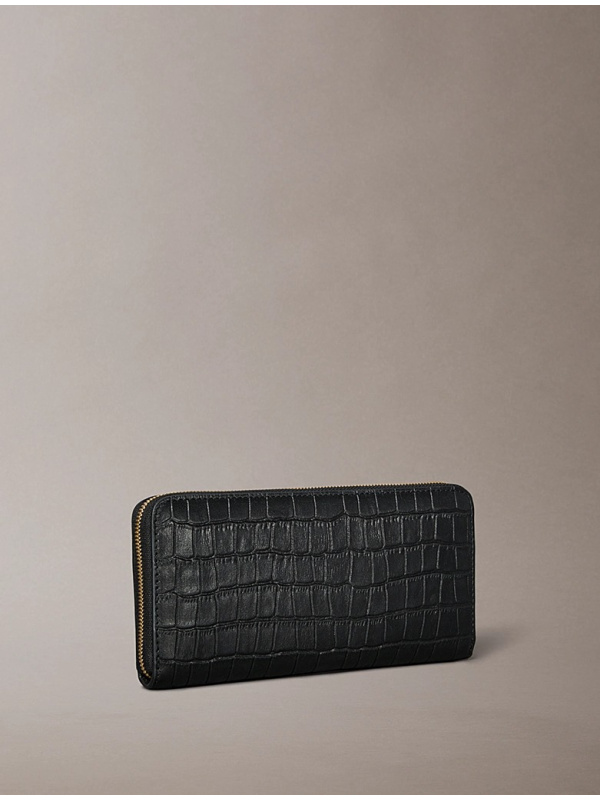Iz profinjene kolekcije Calvin Klein modnih dodataka, ovaj komad je uzdignut s bogatom teksturom utisnutog krokodilskog uzorka i završen fasetiranim metalnim monogramskim okovom za luksuzan dodir
