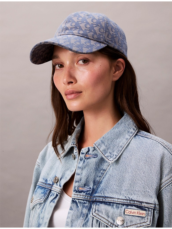 Ženska svijetloplava Calvin Klein kapa s all-over monogramom