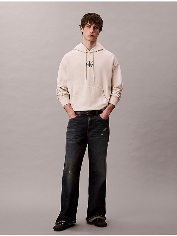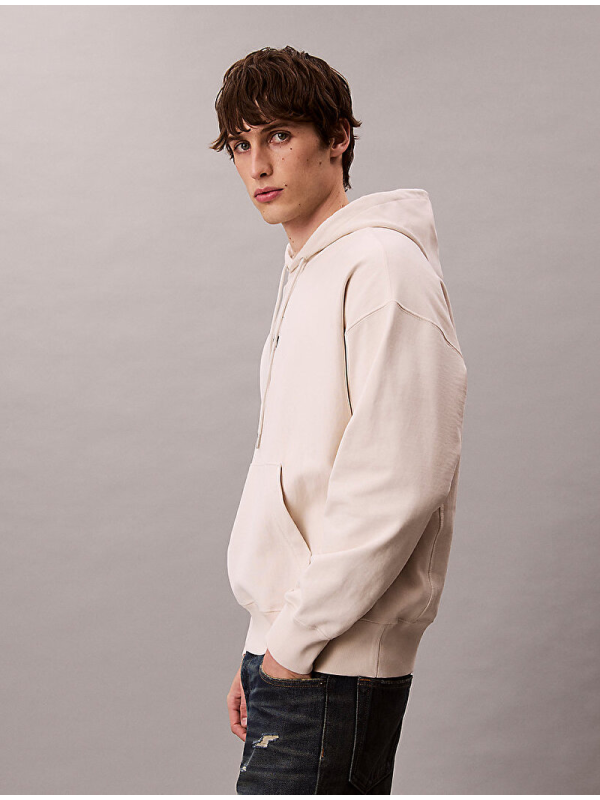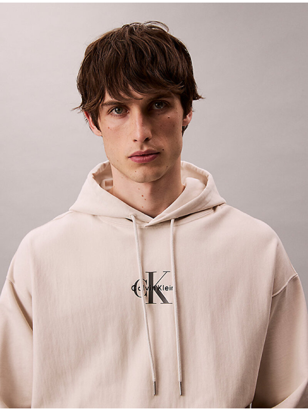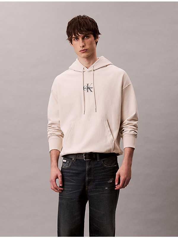 Muški Calvin Klein bež duks s logom, kapuljačom i džepom