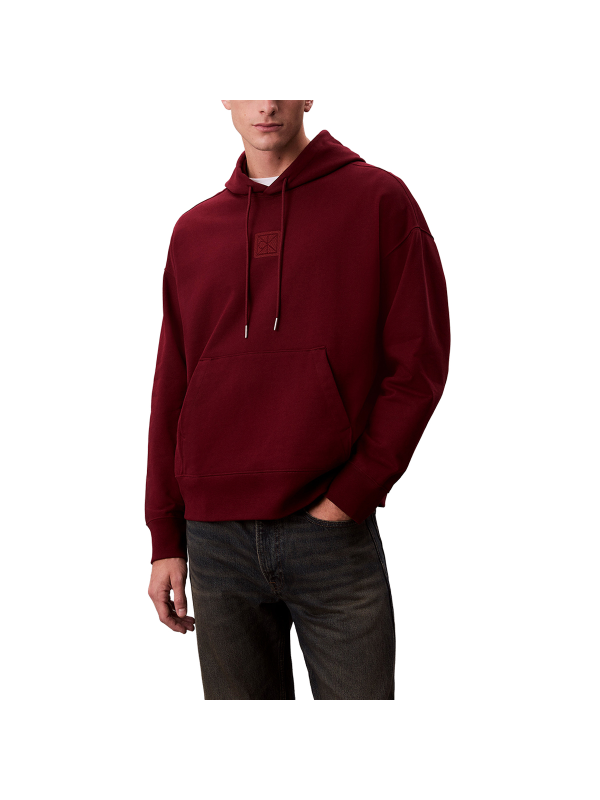 Muška tamnocrvena Calvin Klein dukserica s logom na prsima, kapuljačom i džepom