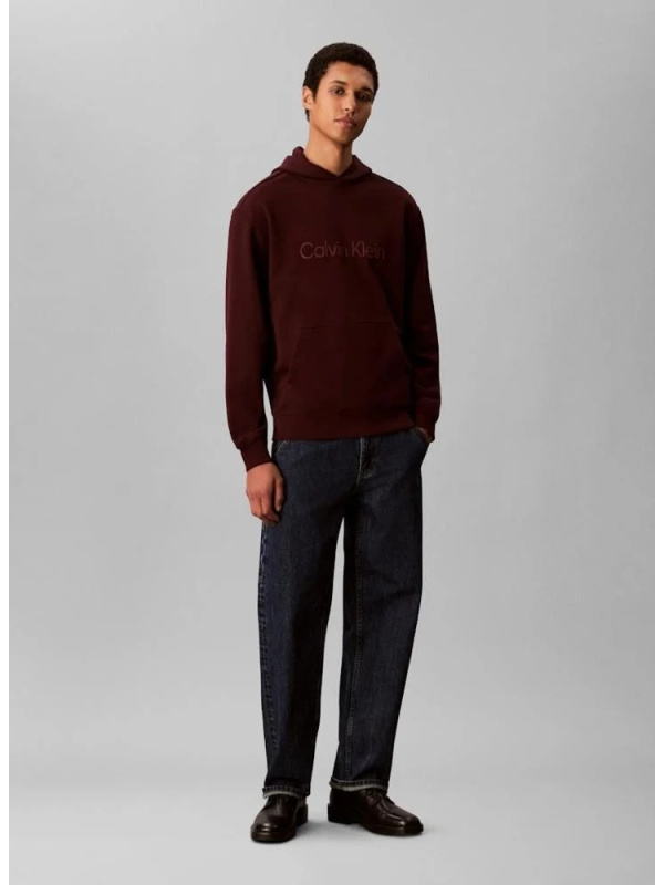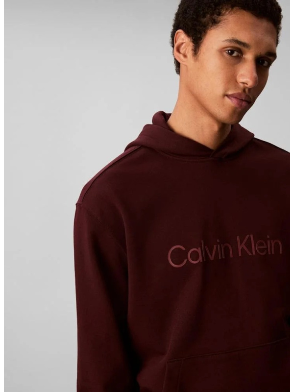 Muška tamnocrvena Calvin Klein majica dugih rukava s logom, džepom i kapuljačom