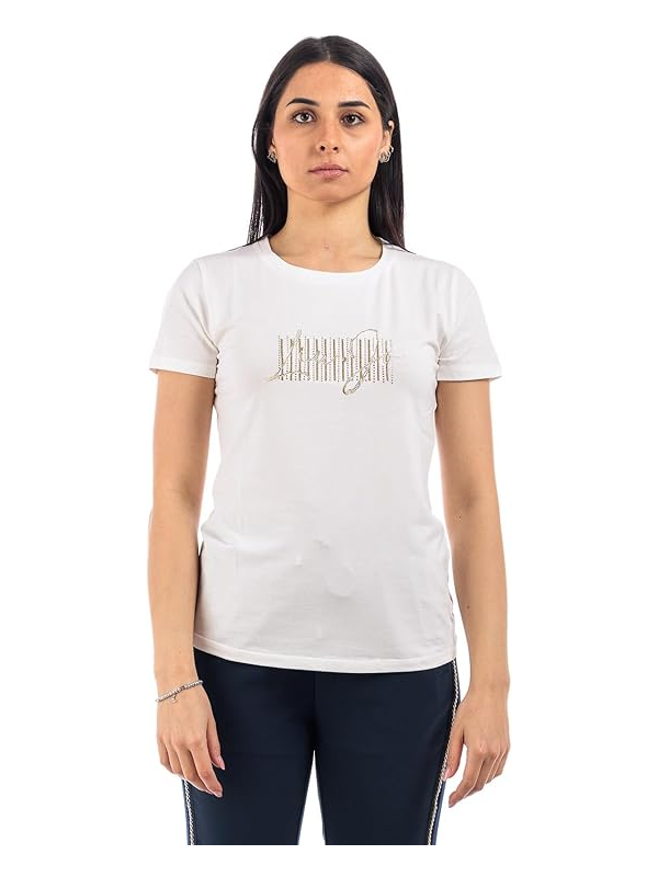Ženska ivory bijela Liu Jo majica kratkih rukava s logo uzorkom na prsima