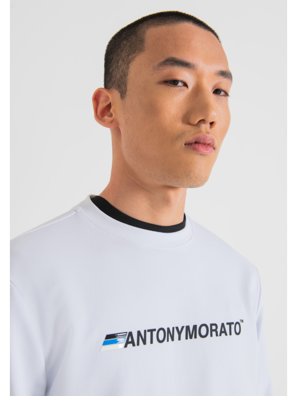 Udobna Antony Morato majica s okruglim izrezom od mekog jednobojnog rastezljivog pamuka, s kontrastnim gumiranim logom na prsima.