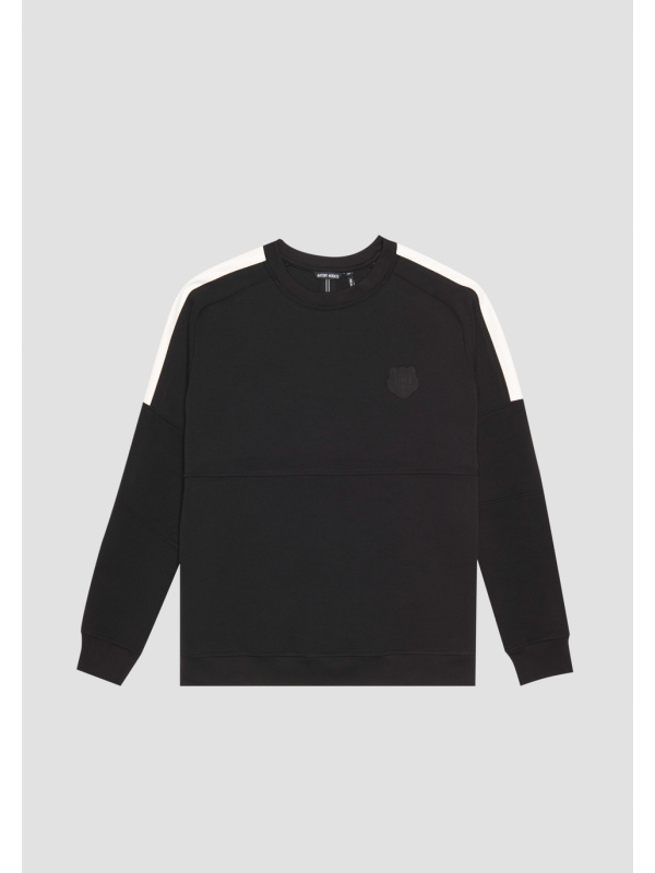 Muška Antony Morato crna majica od mješavine pamuka s kontrastom od umjetne kože i gumenim tiskom