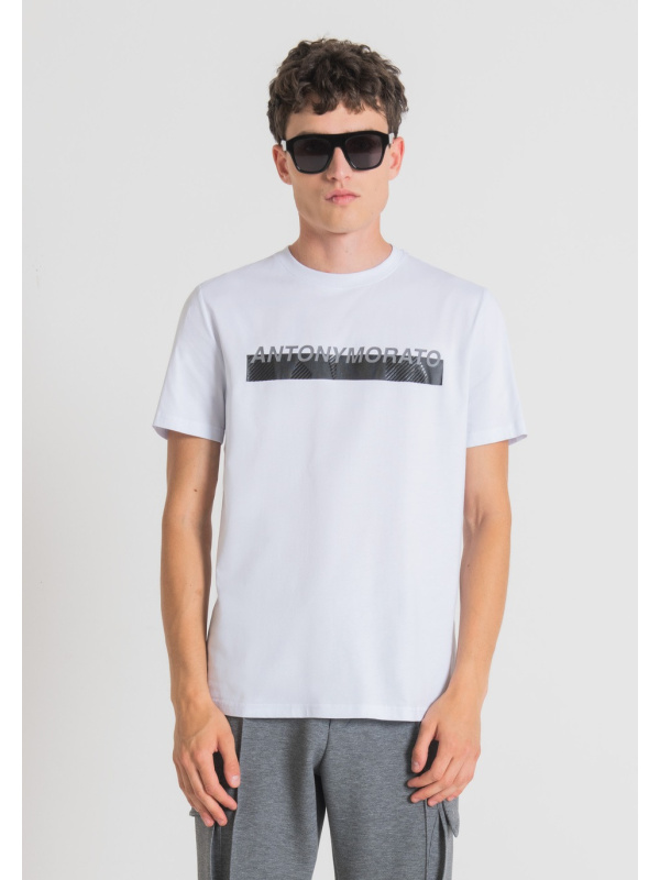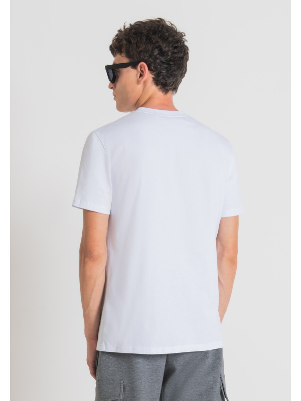 Majica kratkih rukava s okruglim izrezom izrađena od jednobojnog čistog pamuka. Ovaj odjevni predmet karakterizira gumirani injekcijski print s logom na području prsa. Ovaj model uskog kroja lako će se prilagoditi vašem casual looku.