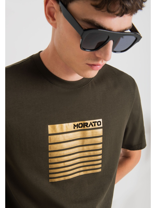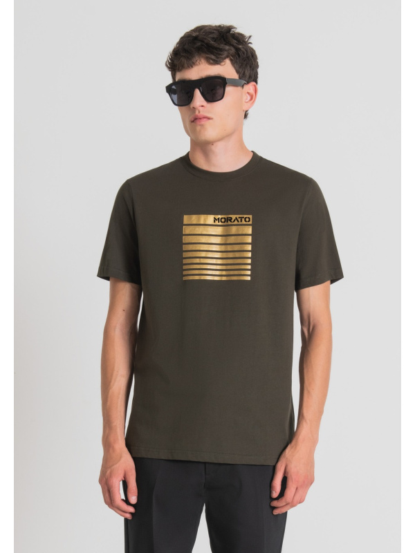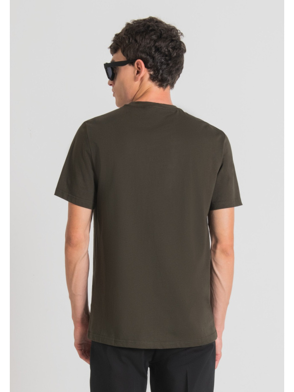 Ova jednobojna jednobojna majica s okruglim izrezom kratkih rukava i pravilnog kroja posebno je elegantna. Logo se nalazi na printu izrađenom Flock tehnikom debelih pruga koje su ugodne na dodir. Izrađen od mekanog 100% pamuka, ugodan je za nošenje i savršen za upotpunjavanje najrazličitijih odjevnih kombinacija.