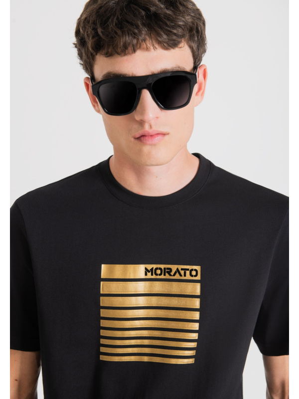Ova crna Antony Morato majica s okruglim izrezom kratkih rukava i pravilnog kroja posebno je elegantna.
