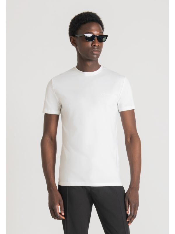 Profinjena i elegantna bijela Antony Morato majica kratkih rukava s okruglim izrezom uskog kroja. Izrađena je od mekanog i udobnog rastezljivog pamučnog žerseja koji će vas uz lagani dodir pratiti u svakodnevnim aktivnostima.