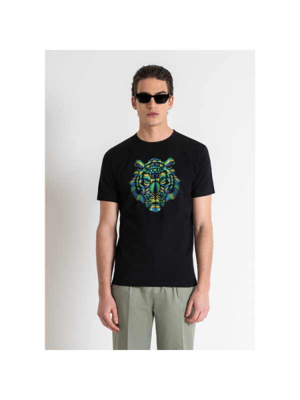 Muška Antony Morato pamučna majica s logom tigra sa 'sponge' efektom