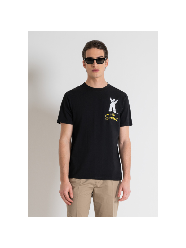 Muška Antony Morato pamučna 'The Simpsons' majica sa mat plastičnim printom te reljefnim otiskom