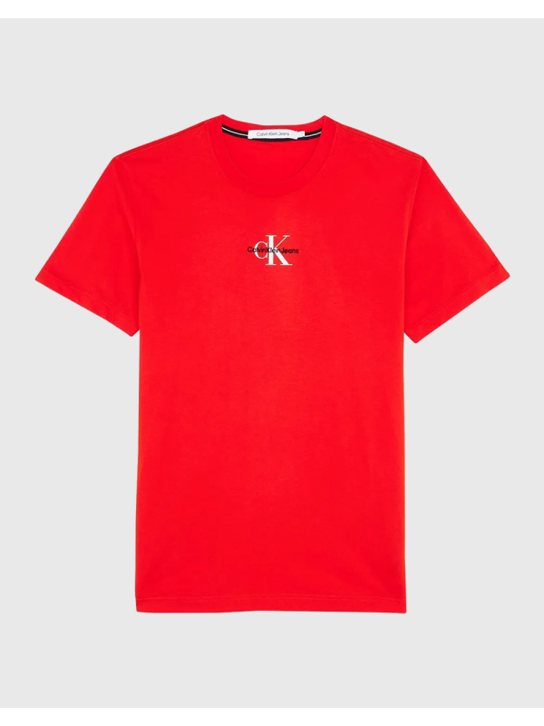 Muška Calvin Klein crvena majica kratkih rukava pravilnog kroja s okruglim izrezom i vezom logotipa na prsima
