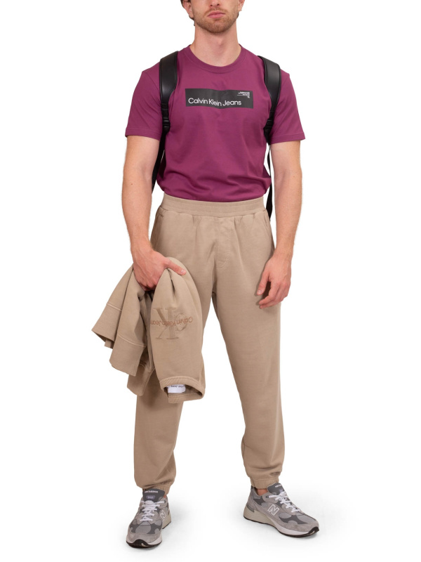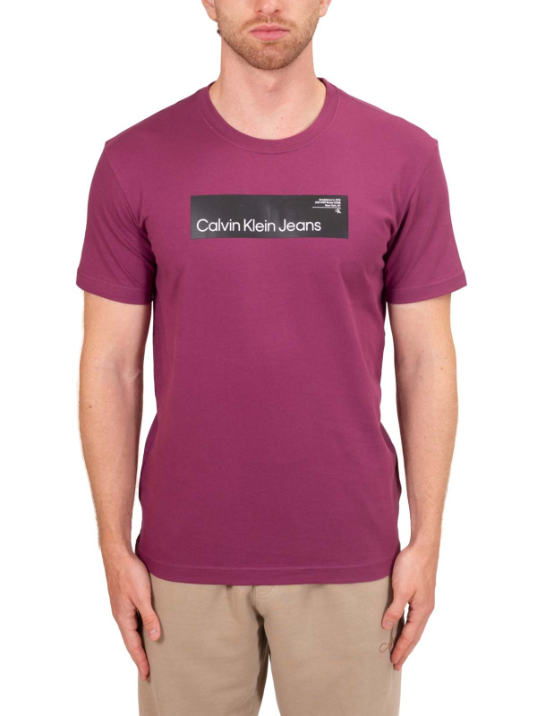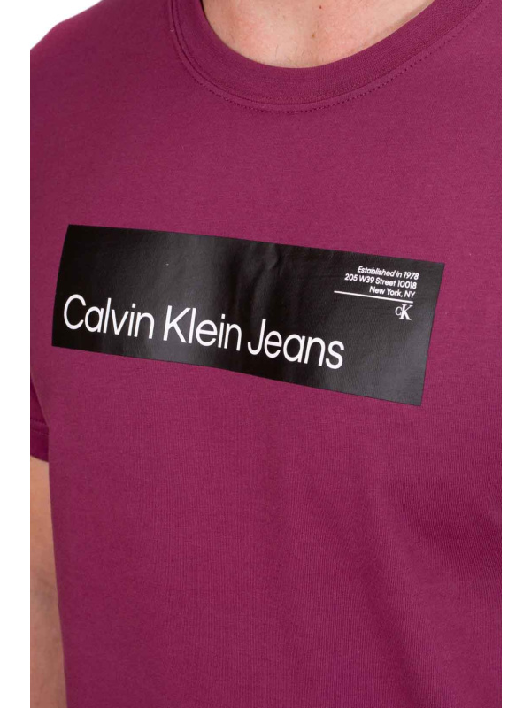 Obična muška majica kratkih rukava, od čistog ljubičastog pamučnog žerseja, s rebrastim dekolteom i logotipom Calvin Klein Jeans s monogramom s prednje strane.