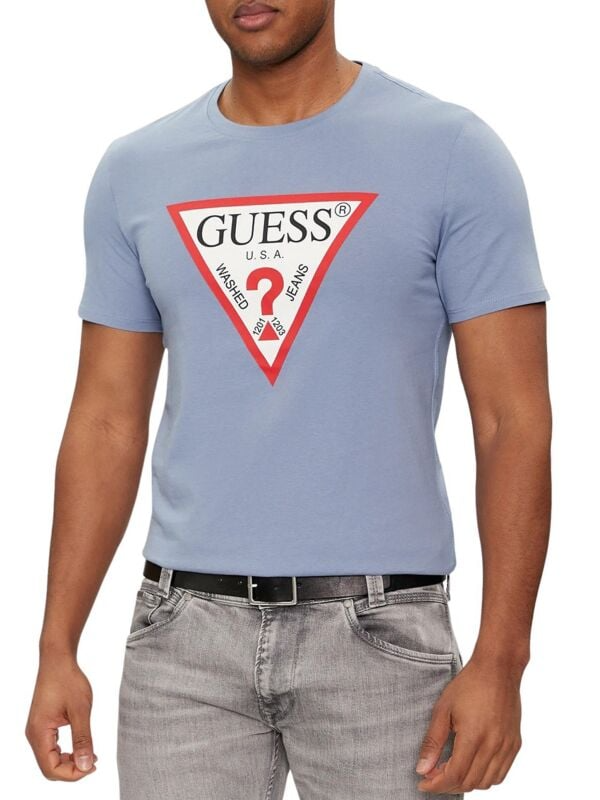 Original Logo Tee plava muška majica sa crvenim Guess trouglom