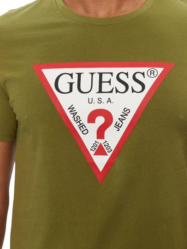 Guess Original Logo Tee maslinasta majica sa crveno-bijelim trouglom