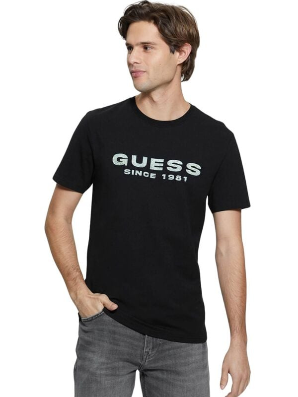 Guess crna slim fit muška majica sa logo printom